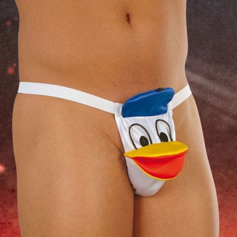 Želiš da je iznenadiš, zabaviš i uzbudiš, a sve to u isto vreme? Ove super sexy zabavne muške tange su prava stvar za neku ludu priliku. One su interesantnog i šaljivog dizajna, klasičnog oblika, ali ukrašene motivom plišanog patka. Hmm, to već daje uzbudljive ideje! Detalji su istaknuti i u ovom specijalnom kostimu tvoj macan će biti maskiran u dobro poznatog Paju Patka. Već ti je jasno da je to dovoljan razlog za uzbuđenje. Tange su udobne i spremne za nezaboravnu sexy zabavu, a zbog svog jedinstvenog dizajna super su i kao izbor za duhovit i sasvim originalan poklon, za dečka ili za drugara i bilo koju osobu za koju znaš da će joj se svideti tvoj humor, pun erotskih aluzija. Zabavne Paja Patak muške tange dostupne su u univerzalnoj veličini i odgovaraju većini muškaraca. Muževnost, humor i nedvosmislena erotika savršeno su spojene u ovom šaljivom modelu muških tangi.